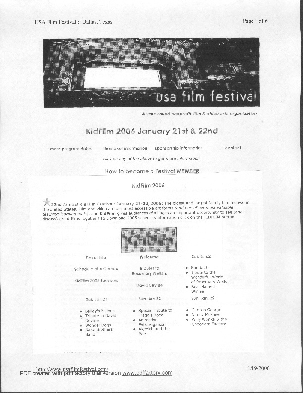 The USA Film Festival’s 24th annual KidFilm® Festival announces the schedule of something for everyone.events taking place Saturday, January 19 and Sunday, January 20, 2008 at the Angelika Film Center, 5321 E. Mockingbird Lane, Dallas, Texas.