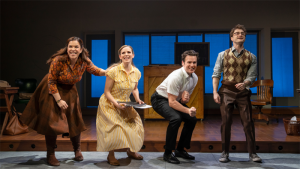This is a filmed version of a stage production so the camera angles are adjusted so they don’t show too much of the stage. I like how the sets are quickly changed with minimal distraction. I also really like how costumes are used to help tell each character’s story. For example, Charley, the character who remains true to himself the entire time has the same costume for every scene, except one. Frank switches from a t-shirt when he is younger to a long sleeved shirt when he is older, but it is the same color and style. I really enjoyed each of the songs because they help the story move along and are very catchy.