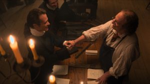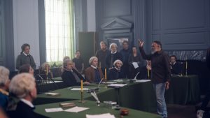 This film shines in its visual aspects and definitely kept my attention. The lighting is spectacular and made me feel like I was experiencing and seeing history with new eyes. The realistic costumes reflect the late 1700s style accurately. The transitions between scenes are very well put together and are satisfying to watch. The movie really comes to life as the sets look accurate to the time period. When I was watching it, I was completely invested! The cast’s performance is truly amazing and definitely makes this movie breathtaking. George Whitfield, played by Jonathan Blair, is one of the most enjoyable to watch. The way he expresses his character’s emotions is effortless and very believable. The relationship between Benjamin Franklin and George Whitefield unfolds with care and attention. They go from not knowing each other and being wary of each other to becoming best friends for many years. I love the way we see how they influence each other to be better and make a lasting impact, and how Benjamin Franklin learned from Whitefield and contributed to history in his own way.